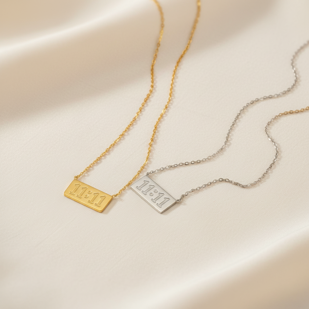 This elegant necklace features "11:11" design crafted from durable stainless steel, beautifully finished with an 18K gold plating for a refined and timeless look.
